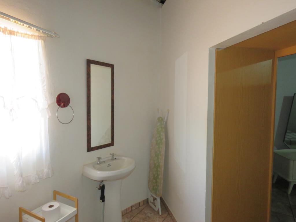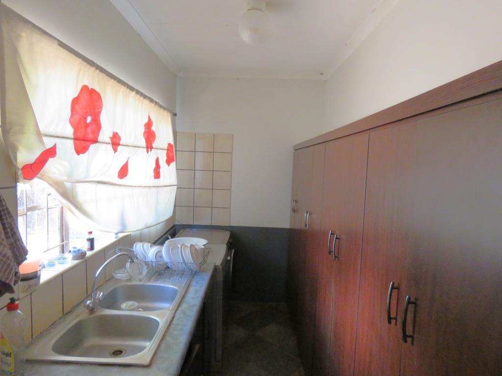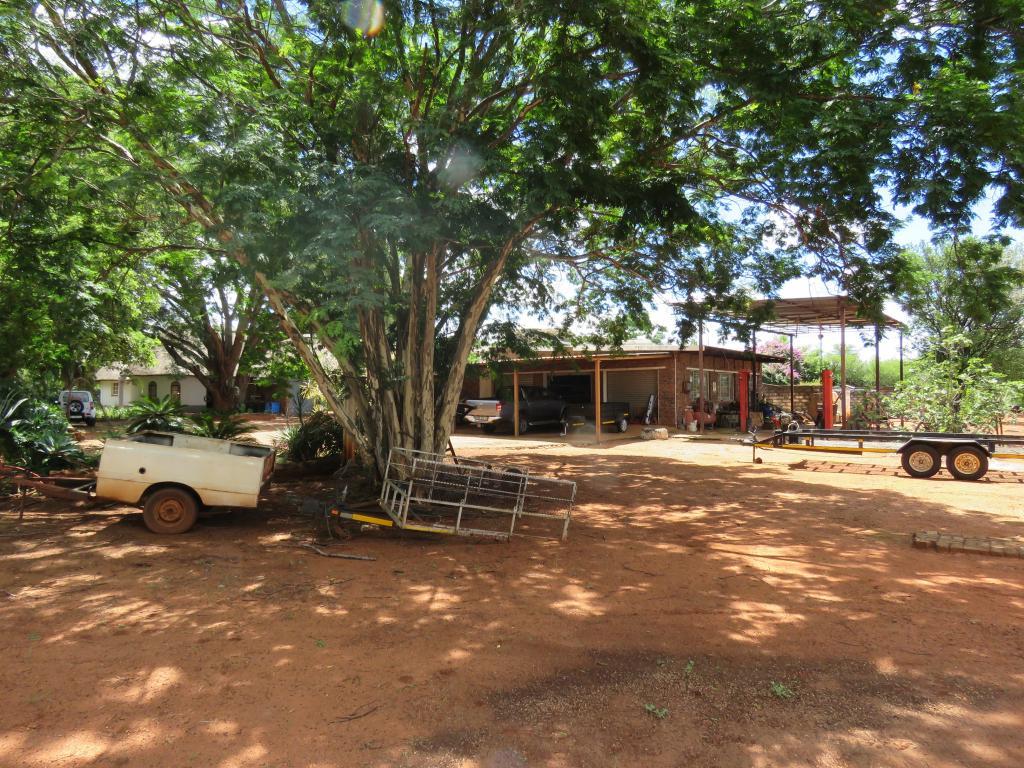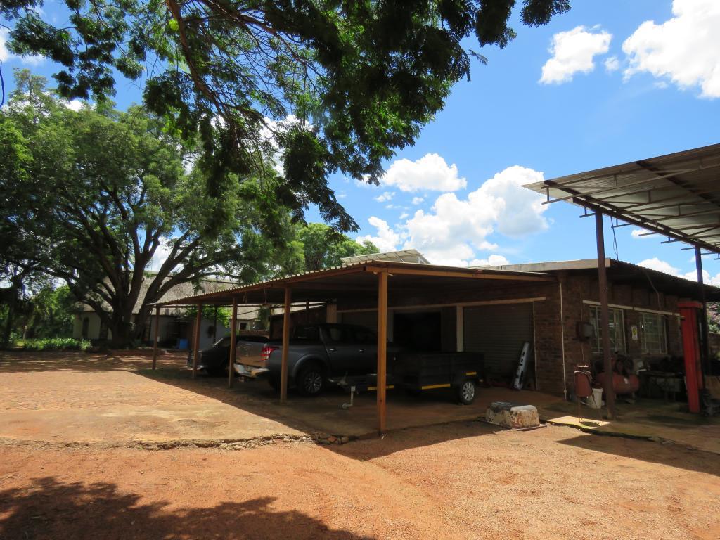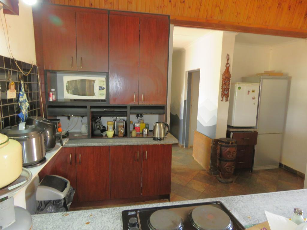 | Description: | Experience freedom and peace on this 12.8 ha piece of land. Main features: Bordering town area, the location is ideal. 16 Solar panels, 3 batteries and 8 KVA inverter for main house. Borehole provides for home and gardening purposes. Flowing gardens with irrigation. Cameras on premises, as well as security lights and outside beams. Other features outside: Cattle fence around property Swimming pool with pump Carport for 5 vehicles, and paved driveway. Garage or workshop (fits 6 vehicles) Large shed Water tank on stilts Outside room & bathroom Veld, camps and stable. Main house: Lovely, thatched roof house with large front stoep. Tiled floors Lounge and dining room Kitchen with electric stove, scullery and pantry Study 2 Bathrooms 2 Bedrooms. Master bedroom with change room, air conditioning and en suite. Stoep at the second entrance, with covered patio 1st Garden flat Open plan with space for bedroom, kitchenette and living area. Bathroom 2nd Garden flat Living area, kitchenette, bedroom and bathroom. Second entrance with garages. |