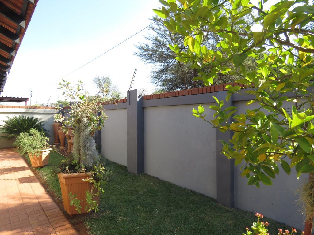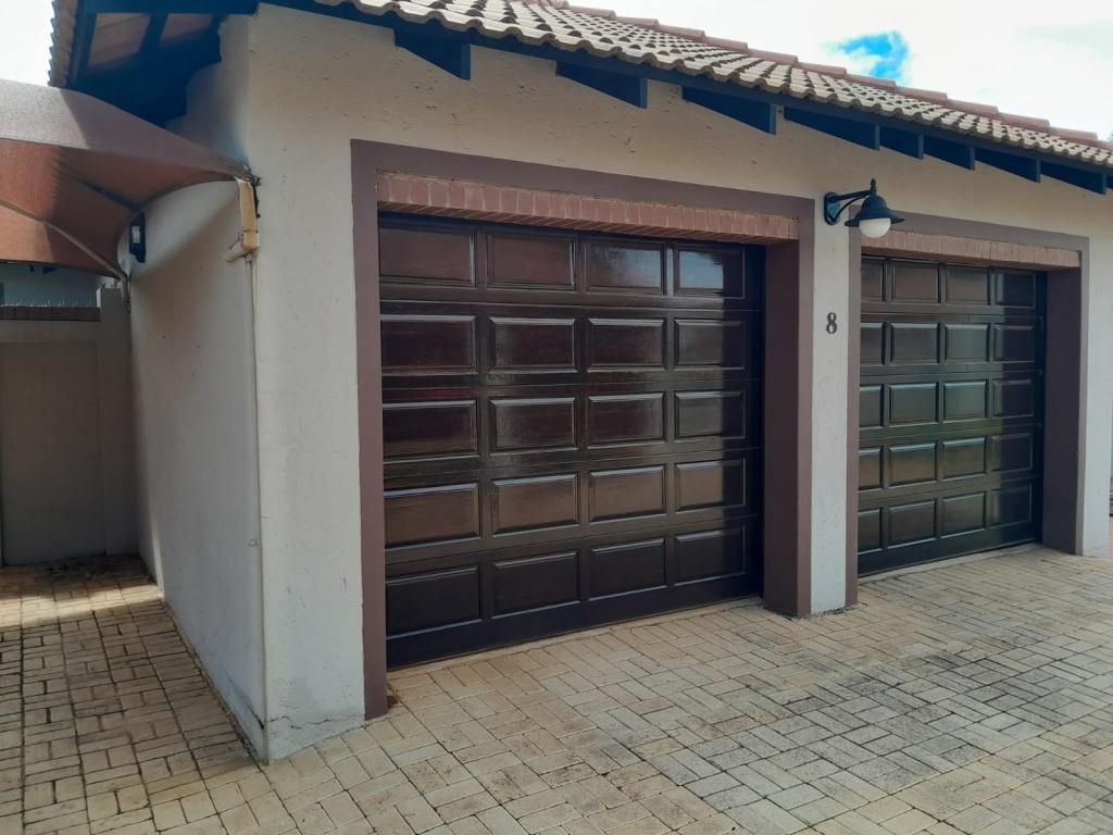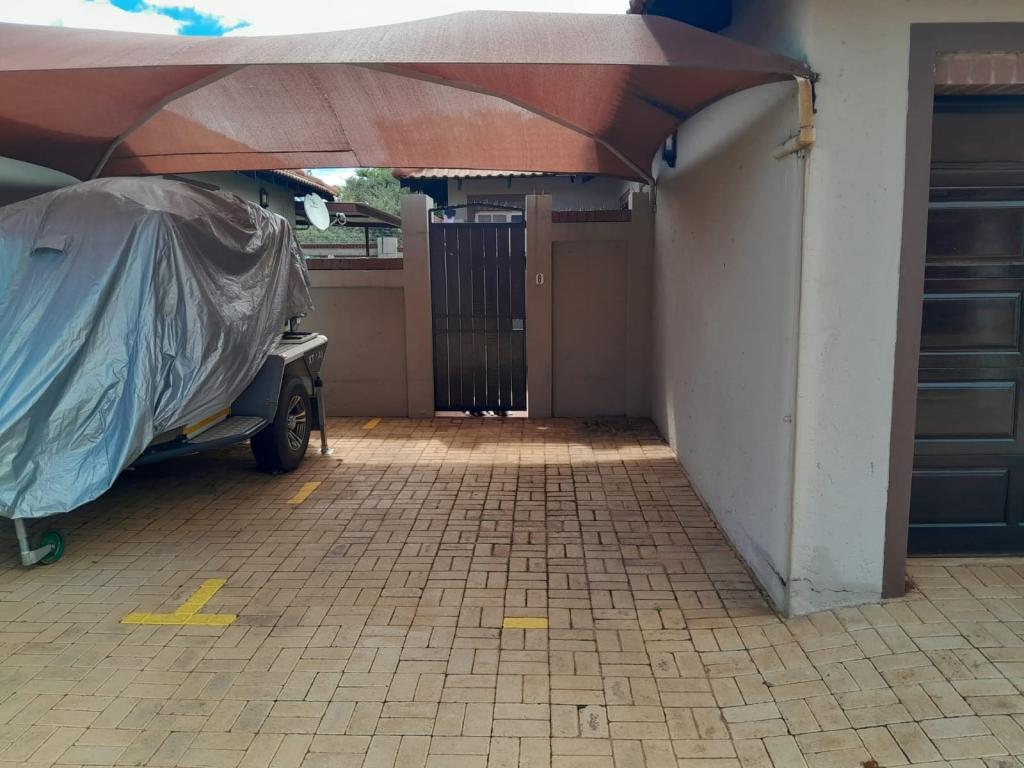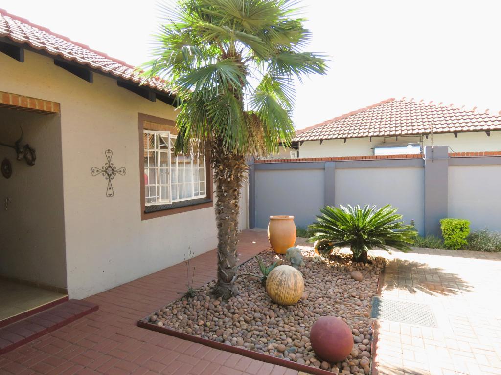 | Description: | Feel at home and safe in this charming complex with 8 lovely townhouses. Features include automated gate, Walls around complex and electric fence. The house, size 165 square m, is spacious and comfortable. The double garage is automated and with door to house, as well as laundry facilities. One covered parking and guest parking on premises. The erf is private at the back, with paving, shrubs and lawn Courtyard with basin and clothesline Water tank with pump.