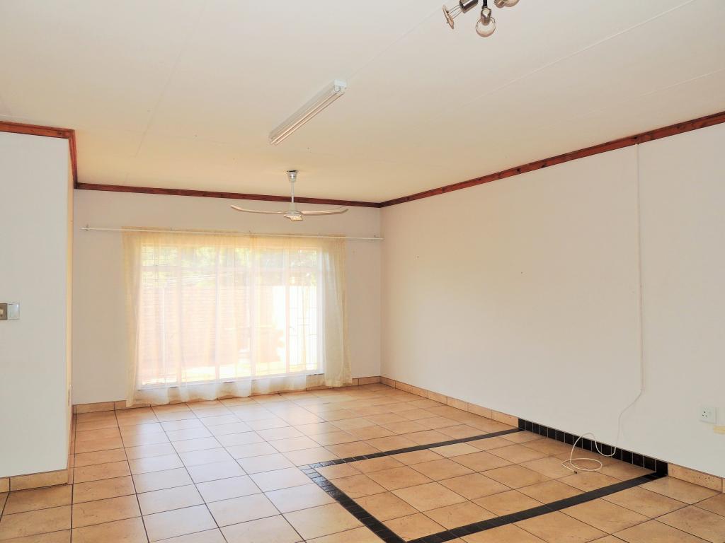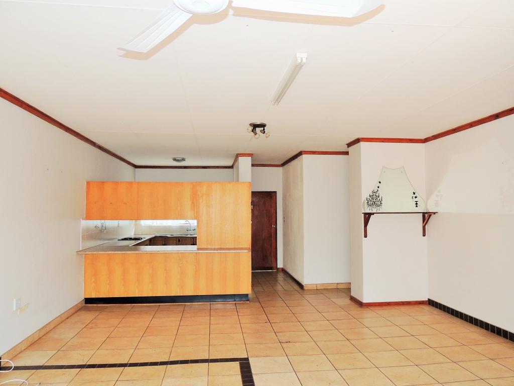 | Description: | This practical sectional title offers many uses. Features: Undercover lock-up parking for 2 cars Bachelor’s flat with small bathroom Tiled floors, wooden corniches, burglar bars and security gates. Spacious kitchen with beautiful oak cupboards. Open plan lounge, dining room Patio overlooking walled courtyard. Paving at the back as well as entrance. Two bedrooms with bic Toilet and full bathroom. |