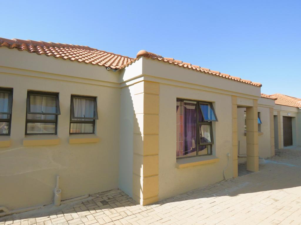 | Description: | Affordable, modern and ideal lock-up-and-go without the hassle of garden maintenance. This complex has automated gates and perimeter walls with electric fencing. The house features: Garage with entrance to the house Large living area, flowing into kitchen with electric stove, granite tops, extractor fan and double basin Aluminium window frames 3 bedrooms, each with build-in cupboards 2 Bathrooms Walled garden space. Water tank with pressure pump.